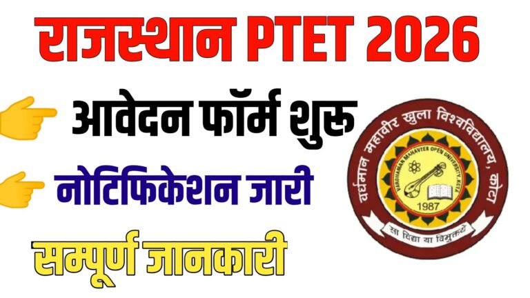 Rajasthan PTET Exam Form 2026 : рд░рд╛рдЬрд╕реНрдерд╛рди рдкреАрдЯреАрдИрдЯреА рдкреНрд░рд╡реЗрд╢ рдкрд░реАрдХреНрд╖рд╛ 2026 рдХрд╛ рдиреЛрдЯрд┐рдлрд┐рдХреЗрд╢рди рдЬрд╛рд░реА, рдЖрд╡реЗрджрди рд╢реБрд░реВ