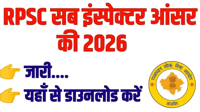 RPSC Sub Inspector Asnwer Key 2026 : राजस्थान सब इंस्पेक्टर परीक्षा की संभावित आंसर की जारी, यहां से देखें