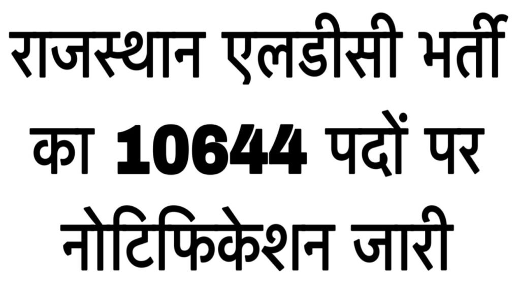 राजस्थान कर्मचारी चयन बोर्ड (RSMSSB) द्वारा Rajasthan LDC Recruitment 2026 का ऑफिशियल नोटिफिकेशन जारी कर दिया गया है। इस भर्ती के तहत राज्य सरकार के विभिन्न विभागों एवं कार्यालयों में लिपिक ग्रेड द्वितीय (LDC) / कनिष्ठ सहायक के कुल 10644 पदों पर भर्ती की जाएगी।